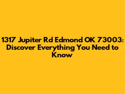 Hey guys! Are you curious about 1317 Jupiter Rd, Edmond, OK 73003? Whether you're a potential buyer, a neighbor, or just someone interested in real estate, this comprehensive guide provides all the details you need. We’ll dive into the property specifics, local amenities, neighborhood vibes, and everything else that makes this location special. So, let’s get started and explore what 1317 Jupiter Rd has to offer!