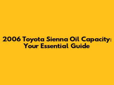 Understanding Oil Capacity for Your 2006 Sienna