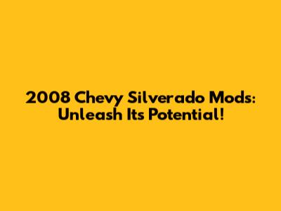 2008 Chevy Silverado Mods: Unleash Its Potential!