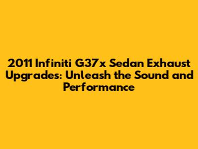Hey guys! If you're the proud owner of a 2011 Infiniti G37x sedan and you're looking to spice things up, then diving into the world of exhaust upgrades is a fantastic place to start. We're talking about making your already sweet ride sound even better and maybe, just maybe, squeeze out a little extra pep in its step. The G37x sedan is a fantastic car, blending luxury with a sporty feel, and the exhaust system is a key component that really lets its V6 engine sing. Whether you're after a deeper, more aggressive tone, a subtle rumble, or just want to improve the flow for a bit more horsepower, there are plenty of options out there. Let's dive deep into what you need to know about upgrading the exhaust on your 2011 G37x sedan.