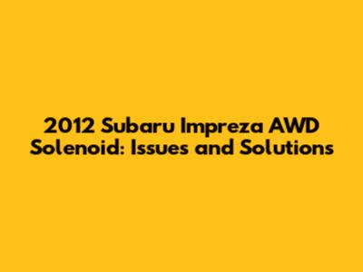 By understanding the function of AWD solenoids, common problems, diagnostic techniques, and solutions, you can keep your 2012 Subaru Impreza's AWD system in top condition. Regular maintenance and prompt attention to any issues will ensure reliable performance and enhanced safety on the road.