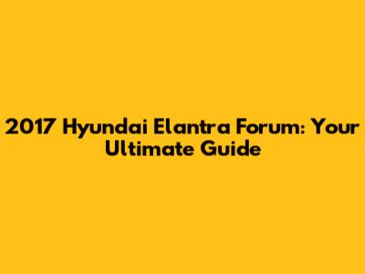 2017 Hyundai Elantra Forum: Your Ultimate Guide