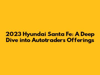 Hey car enthusiasts! Are you guys on the hunt for a new ride? Thinking about the 2023 Hyundai Santa Fe? Well, you're in luck! Let's dive deep into what Autotrader has to offer for this fantastic SUV. We'll explore everything from trims and features to pricing and where to find the best deals. Get ready to buckle up because we are about to begin the journey into the world of the 2023 Hyundai Santa Fe on Autotrader. This guide is designed to be your one-stop shop for all things related to the Santa Fe. So, if you're curious about different model options, specific features, or simply want to know how to navigate the Autotrader platform to find the perfect Santa Fe for you, stick around. We'll also cover the pros and cons of purchasing through Autotrader, compare it with other buying options, and give you some pro tips to get the best bang for your buck. Whether you're a seasoned car buyer or a first-timer, this comprehensive guide will equip you with all the necessary information to make an informed decision. The 2023 Hyundai Santa Fe is a popular choice for families and individuals alike, known for its spacious interior, advanced technology, and stylish design. With Autotrader being a prominent online marketplace for used and new cars, it is an excellent platform for those seeking a Santa Fe. Let's get started, shall we?