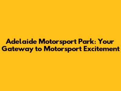 Adelaide Motorsport Park: Your Guide To Thrilling Events
