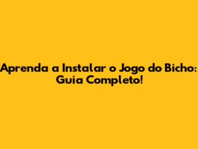 Aprenda A Instalar O Jogo Do Bicho: Guia Completo!
