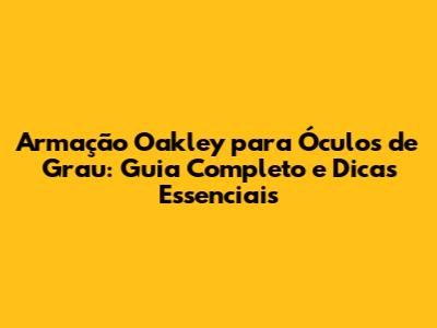 Armação Oakley Para Óculos De Grau: Guia Completo E Dicas Essenciais