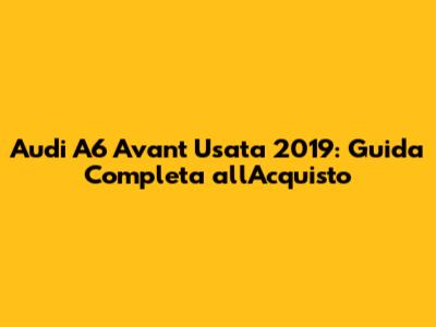 Audi A6 Avant Usata 2019: Guida Completa All'Acquisto