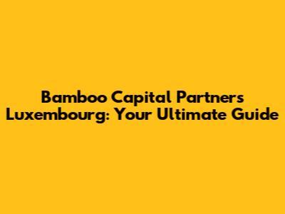 Bamboo Capital Partners Luxembourg: Your Guide