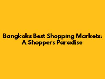 Bangkok's Best Shopping Markets: A Shopper's Paradise