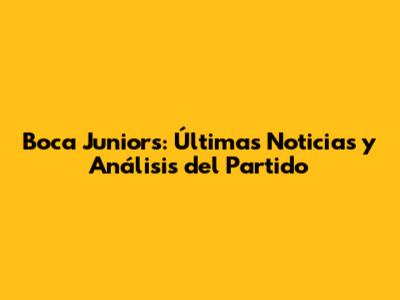 Boca Juniors: Últimas Noticias Y Análisis Del Partido