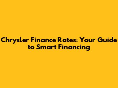 Chrysler Finance Rates: Your Guide To Smart Financing