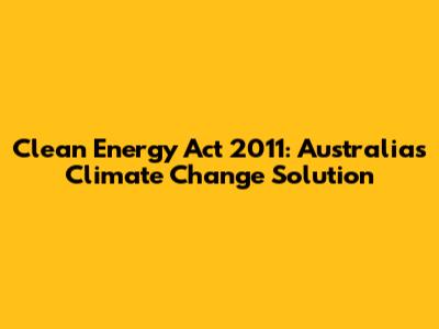 Clean Energy Act 2011: Australia's Climate Change Solution