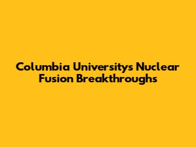 Columbia University's Nuclear Fusion Breakthroughs