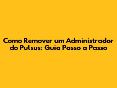 Como Remover Um Administrador Do Pulsus: Guia Passo A Passo