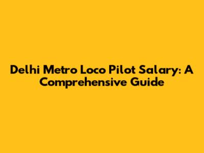 - Q: What is the starting salary for a Delhi Metro loco pilot? A: The starting salary varies depending on the pay scale and allowances, but it is generally competitive. Refer to the latest official notification for the most accurate information.