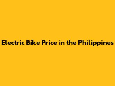 Electric Bike Price In The Philippines