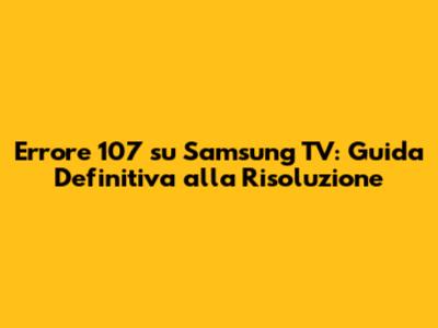 Errore 107 Samsung TV: Guida Definitiva Alla Risoluzione