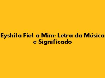 Hey guys! Today, we're diving deep into one of Eyshila's most touching songs: "Fiel a Mim." This song isn't just a tune; it's a powerful declaration of faith and trust in God's unwavering loyalty. We're going to explore the lyrics, uncover the meaning behind them, and understand why this song resonates with so many people. Whether you're already a fan or just discovering Eyshila, get ready to be inspired!