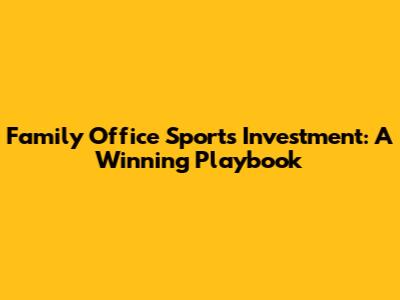 Family Office Sports Investment: Strategies And Opportunities