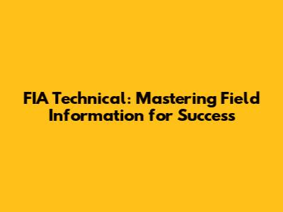 FIA Technical: Mastering Field Information For Success