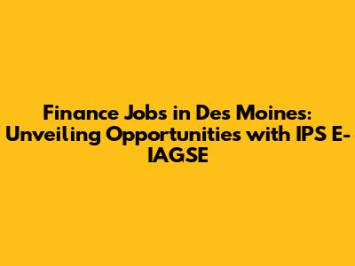 Finance Jobs In Des Moines: Your Guide To IPS E-IAGSE