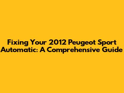 Fixing Your 2012 Peugeot Sport Automatic: A Comprehensive Guide