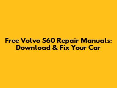 Free Volvo S60 Repair Manuals: Download & Fix Your Car