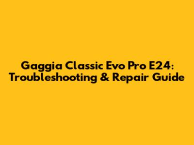 Gaggia Classic Evo Pro E24: Troubleshooting & Repair Guide