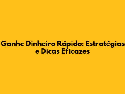 Ganhe Dinheiro Rápido: Estratégias E Dicas Eficazes