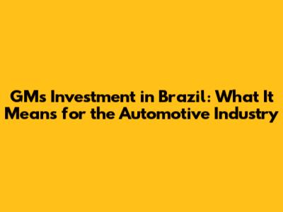 GM's Investment In Brazil: What It Means For The Automotive Industry