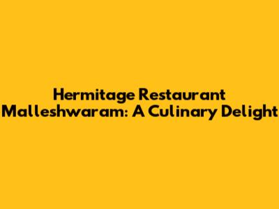 Hermitage Restaurant: A Culinary Gem In Malleshwaram