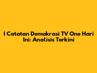 I Catatan Demokrasi TV One Hari Ini: Analisis Terkini