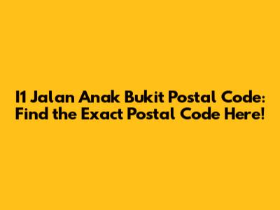I1 Jalan Anak Bukit: Find The Exact Postal Code Here!
