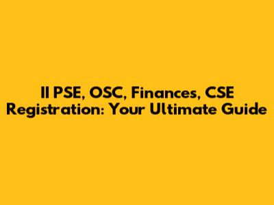 II PSE, OSC, Finances, CSE Registration: Your Complete Guide