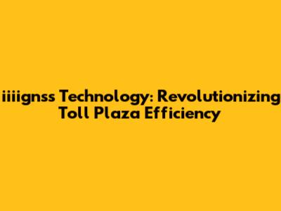 Iiiignss Technology: Revolutionizing Toll Plaza Efficiency