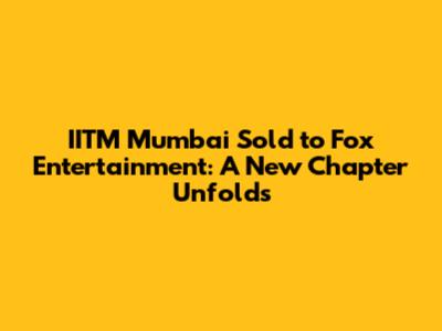 IITM Mumbai Sold To Fox Entertainment: What You Need To Know