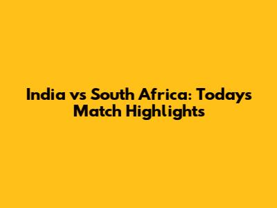 India Vs South Africa: Today's Match Highlights