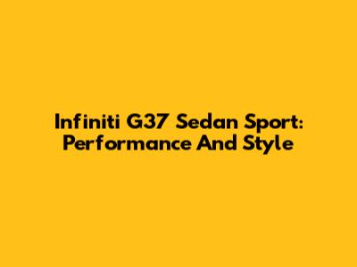 Infiniti G37 Sedan Sport: Performance And Style