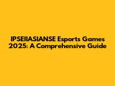 IPSEIIASIANSE Esports Games 2025: What You Need To Know