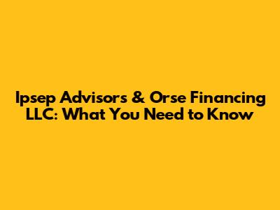 Ipsep Advisors & Orse Financing LLC: What You Need To Know