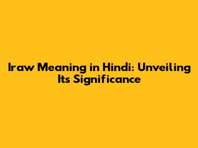 Iraw Meaning In Hindi: Understanding Its Significance
