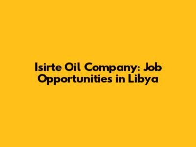 Finding Isirte Oil Company jobs in Libya can be an exciting and rewarding career move. By understanding the company, the industry, and the application process, you can increase your chances of landing your dream job. Remember to tailor your resume, network with industry professionals, and be prepared for the unique challenges and opportunities that come with working and living in Libya. Good luck, and we hope this guide helps you on your journey!
