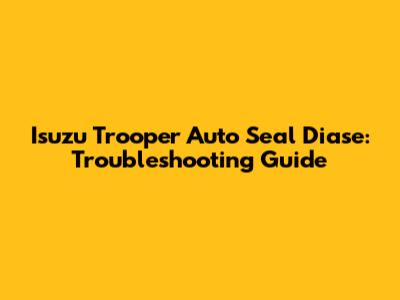 Isuzu Trooper Auto Seal Diase: Troubleshooting Guide
