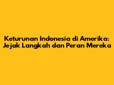 Keturunan Indonesia di Amerika telah memberikan kontribusi yang signifikan dalam berbagai bidang, mulai dari pendidikan dan bisnis hingga seni dan politik. Mereka telah membuktikan kemampuan mereka untuk meraih kesuksesan di berbagai bidang, sekaligus membawa perspektif unik yang memperkaya masyarakat Amerika.