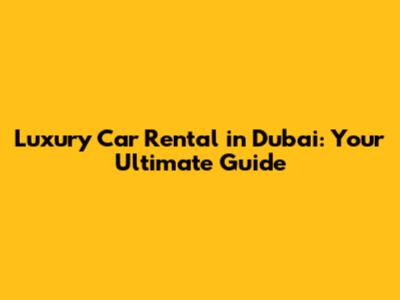Luxury Car Rental In Dubai: Your Ultimate Guide