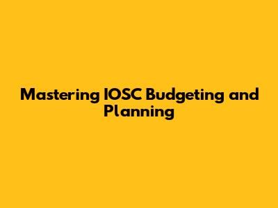 Mastering IOSC Budgeting And Planning