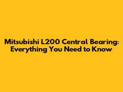 Mitsubishi L200 Central Bearing: A Comprehensive Guide