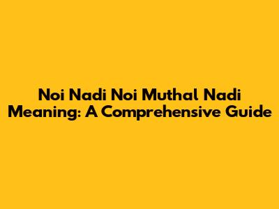 Noi Nadi Noi Muthal Nadi Meaning: A Comprehensive Guide