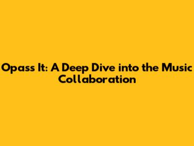 Opass It: A Deep Dive Into The Music Collaboration