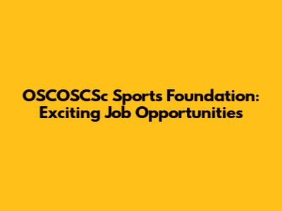 OSCOSCSc Sports Foundation: Exciting Job Opportunities